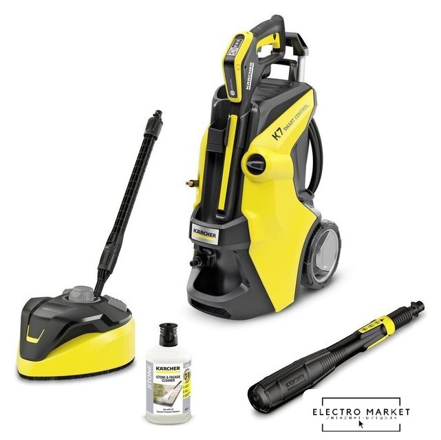 Комплектация | - Приспособление для очистки поверхностей T 7;- Чистящее средство 1 л средство для чистки камней 3-в-1;- Пистолет высокого давления, G 180 Q Smart Control;- Мультиструйный аппарат 3-в-1;- Шланг высокого давления, 10 м;- Мягкий мешок для аксессуаров;- Адаптер подключения к садовому шлангу 3/4". |