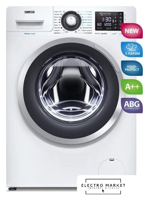 отдельностоящая, стиральная машина, с паром, загрузка до 7 кг, отжим 1200 об/мин, глубина 48.1 см (с люком 54.9 см), энергопотребление A+++, Aquastop, 18 программ, ABG Technology (ATLANT)
