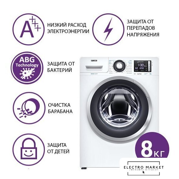 отдельностоящая, стиральная машина, с паром, загрузка до 8 кг, отжим 1200 об/мин, глубина 48.1 см (с люком 54.9 см), энергопотребление A+++, 18 программ, ABG Technology