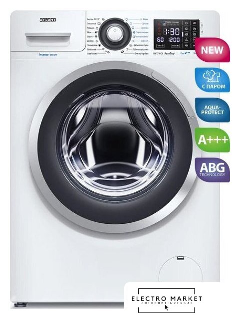 отдельностоящая, стиральная машина, с паром, загрузка до 8 кг, отжим 1200 об/мин, глубина 48.1 см (с люком 54.9 см), энергопотребление A+++, Aquastop, 18 программ, ABG Technology (ATLANT)