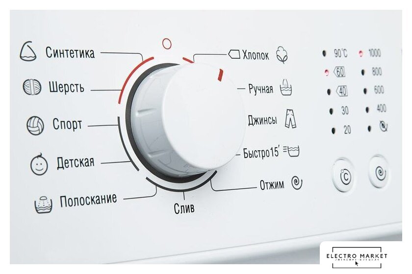 Все программы | • Синтетика• Шерсть• Спорт• Детская• Полоскание• Слив• Хлопок• Ручная• Джинсы• Быстро 15’• Отжим |