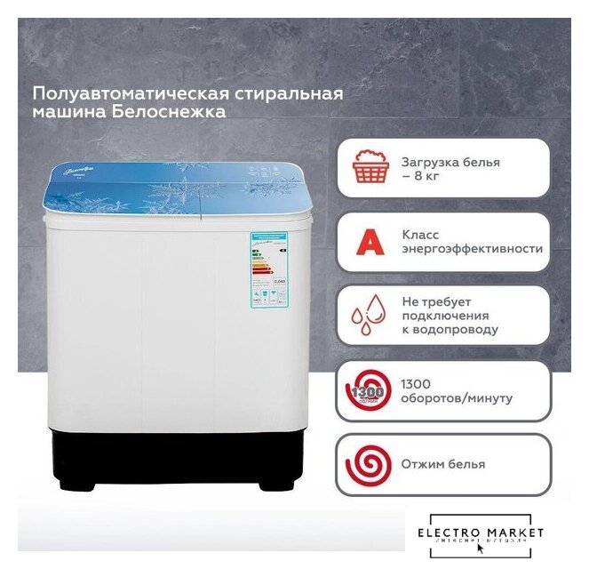 отдельностоящая, активаторная стиральная машина, загрузка до 7 кг, отжим 1350 об/мин, глубина 42 см, энергопотребление A