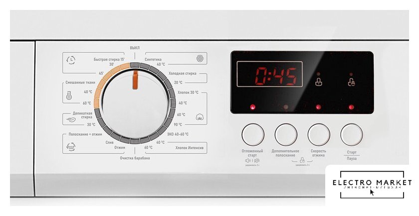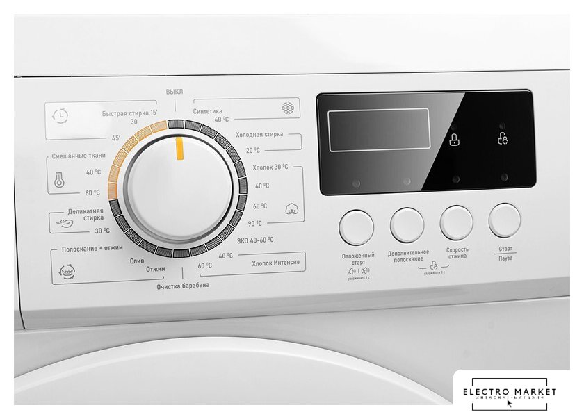 | Все программы | СинтетикаХолодная стиркаХлопокХлопок ИнтенсивЭКО 40-60 °Очистка барабанаСливОтжимПолоскание и отжимДеликатная стиркаСмешанные тканиБыстрая стирка |