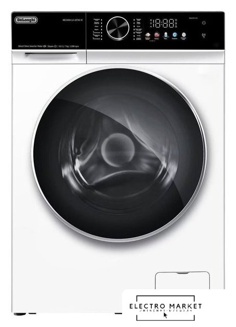 отдельностоящая, стирально-сушильная машина, сушка: естественная конденсация, с паром, загрузка до 10.5 кг, отжим 1200 об/мин, глубина 62.8 см, энергопотребление A+++, прямой привод, 14 программ
