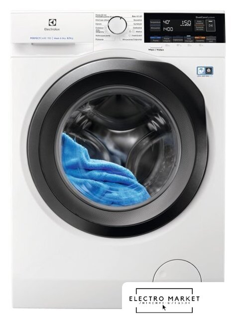 отдельностоящая, стирально-сушильная машина, сушка: естественная конденсация, загрузка до 8 кг, отжим 1400 об/мин, глубина 59 см (с люком 63 см), энергопотребление A, Aquastop, 14 программ