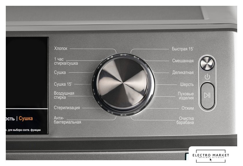 | Все программы | Хлопок Смешанные ткани (Микс) Быстрая 15 мин. 1 час стиркасушка Сушка Сушка 15' Деликатная Пуховые изделия Антибактериальная Стерилизация Шерсть Очистка барабана Воздушная стирка Отжим |