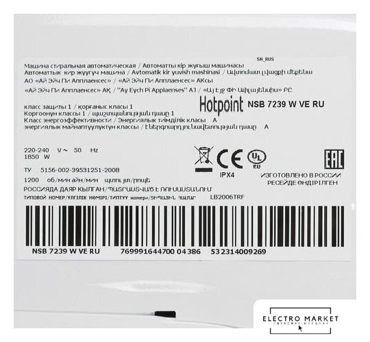 | Расход электроэнергии за цикл | 0.9 кВт·ч |