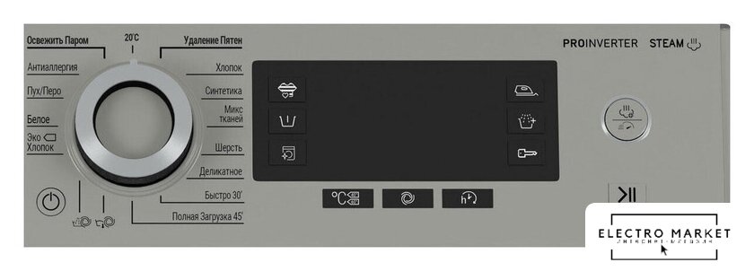 | Все программы | 20°С, антиаллергенная, белое белье, быстрая 30’, деликатная, микс, освежение паром, отжим+слив, полная загрузка, полоскание + отжим, пух, синтетика, удаление пятен, хлопок, хлопок эко, шерсть |