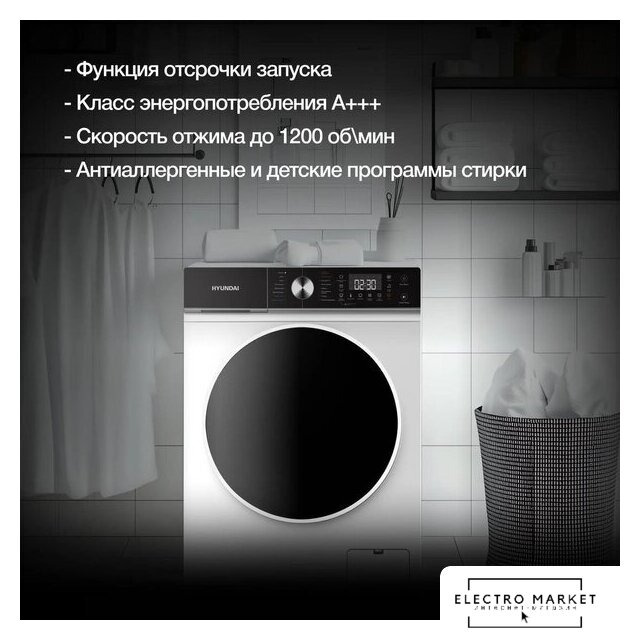 отдельностоящая, стирально-сушильная машина, загрузка до 12 кг, отжим 1200 об/мин, глубина 61 см, энергопотребление A+++, 16 программ