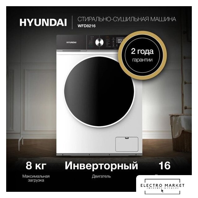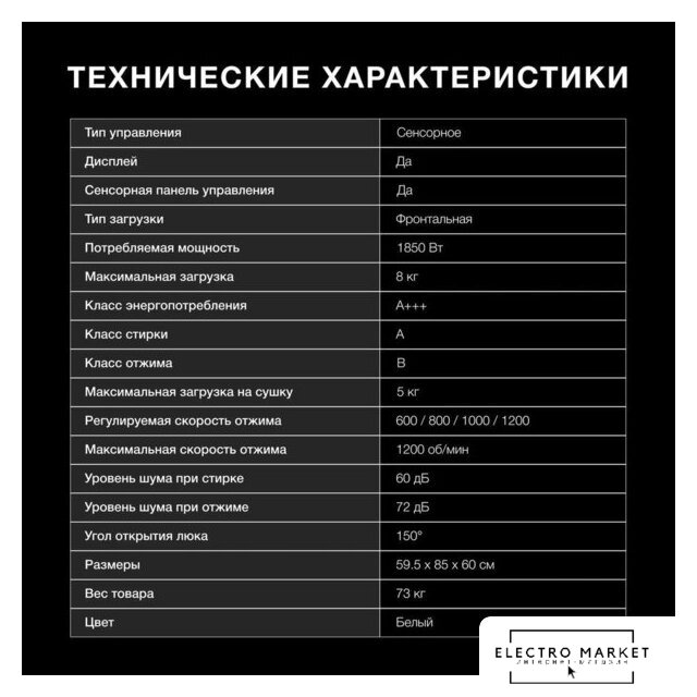 отдельностоящая, стирально-сушильная машина, загрузка до 8 кг, отжим 1200 об/мин, глубина 52.5 см (с люком 84.5 см), энергопотребление A+++, 16 программ