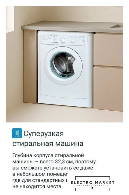отдельностоящая, стиральная машина, загрузка до 6 кг, отжим 1000 об/мин, глубина 41.6 см, энергопотребление A+++, 15 программ