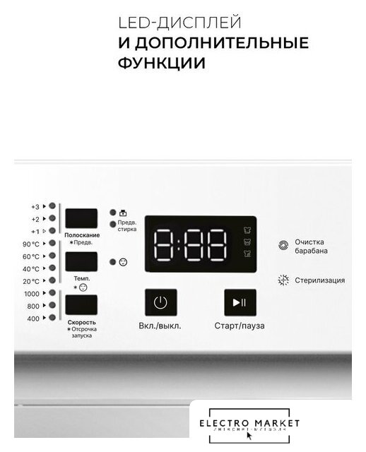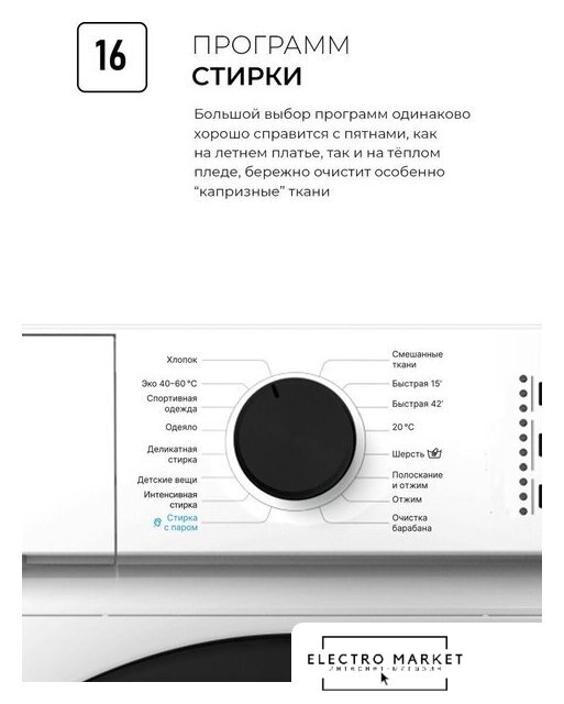 | Все программы | ХлопокЭко 40–60 °ССпортивная одеждаОдеялоделикатная стирка детские вещиинтенсивная стиркаСтирка с паром Смешанные ткани Быстрая 15’ Быстрая 42’20 °СШерстьПолоскание и отжимотжимочистка барабана |