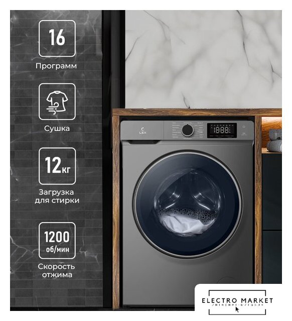 | Годовой расход электроэнергии (стирка+сушка) | 317 кВт·ч/год |
