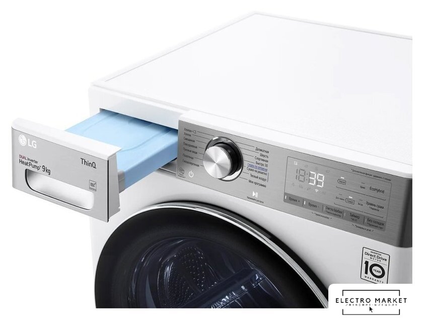 | Оригинальные функции | - С технологией Eco Hybrid экономьте энергию или время в зависимости от ваших задач.- Система самоочистки конденсатора обеспечивает высокую эффективность сушки, избавляет от регулярной чистки и не требует вашего участия (конденсатор промывается автоматически до 3 раз за цикл для устранения ворсовой пыли и поддержания работы сушильной машины).- Allergy Care: в режиме сушки "Гипоаллергенная" происходит удаление до 99,9% пылевых клещей, которые являются причиной аллергии и респираторных заболеваний.- Двойной фильтр задерживает частицы ворса, обеспечивая бесперебойную работу сушильной машины.- Датчики влажности и температуры автоматически определяют влажность каждой вещи, чтобы оптимизировать время сушки. Это защищает одежду от повреждений, вызванных слишком высокой температурой.- Управление по Wi-Fi позволяет дистанционно контролировать процесс сушки, а также синхронизировать работу стиральной и сушильной машин. |