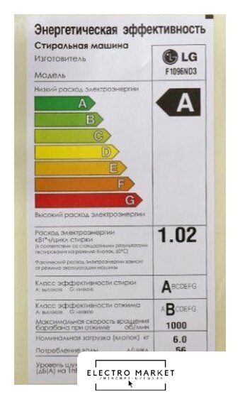 Расход электроэнергии за цикл | 1.02 кВт·ч |
