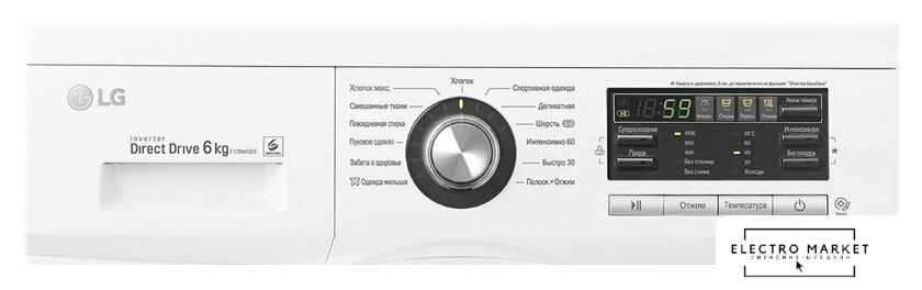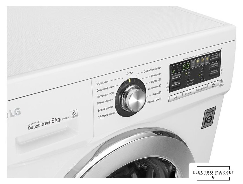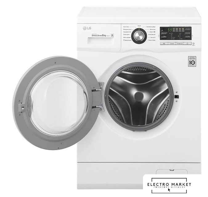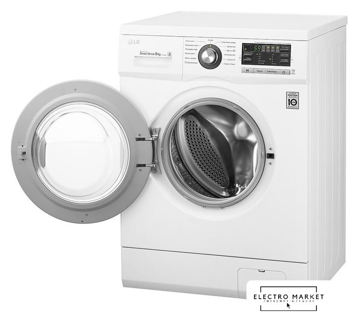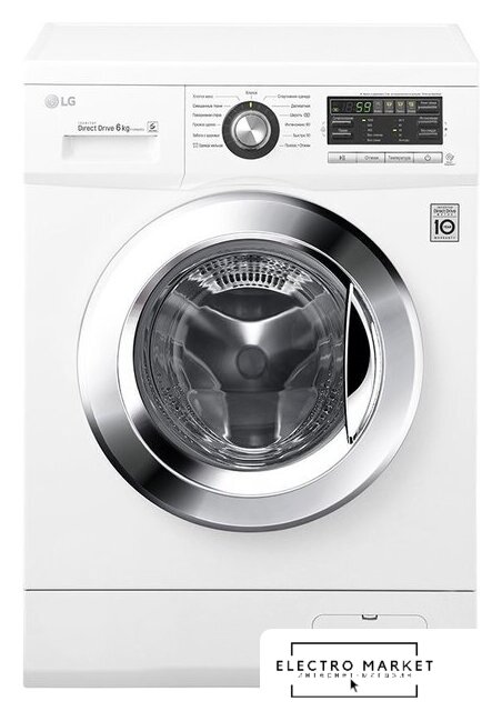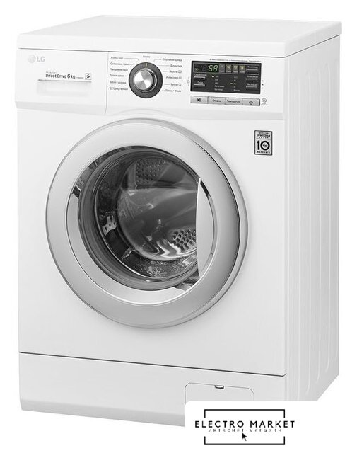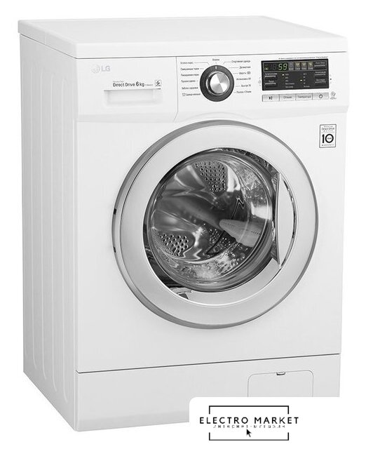отдельностоящая, стиральная машина, загрузка до 6.5 кг, отжим 1200 об/мин, глубина 44 см (с люком 50 см), энергопотребление (new) A, прямой привод, 10 программ, 6 Motion (LG)