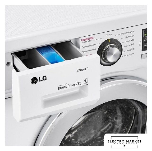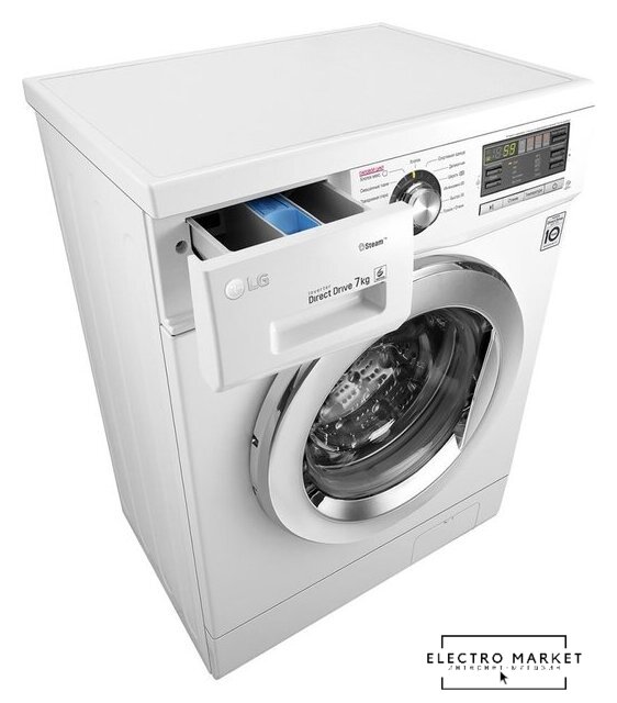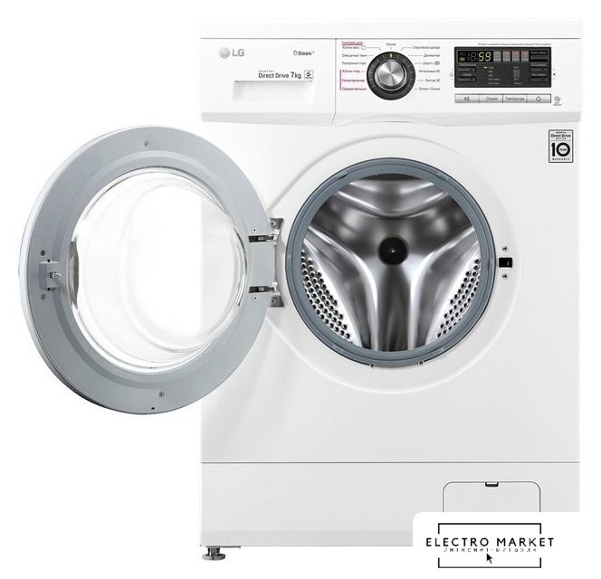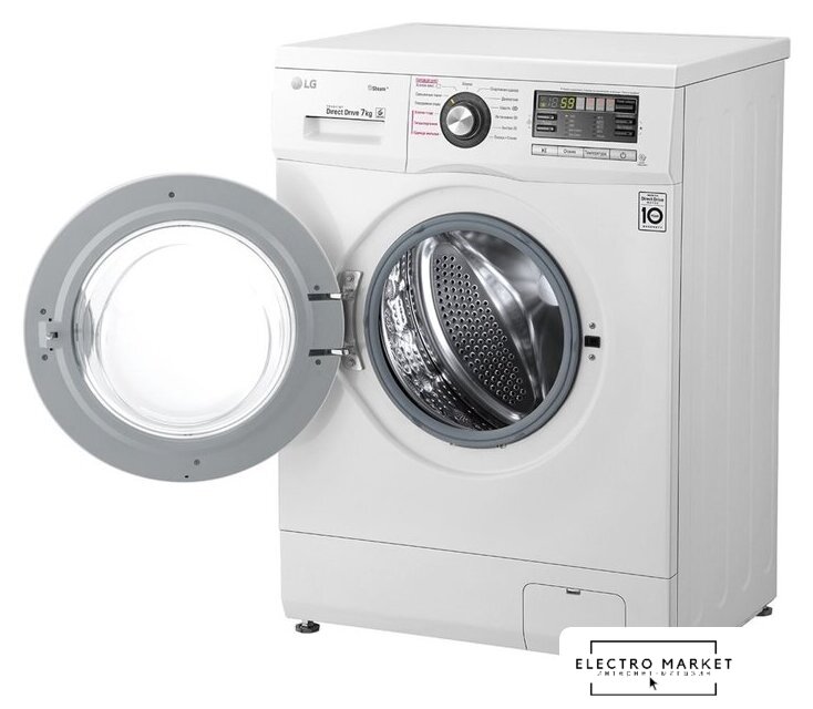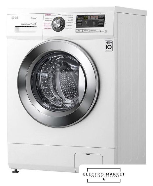 отдельностоящая, стиральная машина, загрузка до 9 кг, отжим 1200 об/мин, глубина 55 см (с люком 59 см), энергопотребление A, прямой привод, 10 программ, 6 Motion (LG)