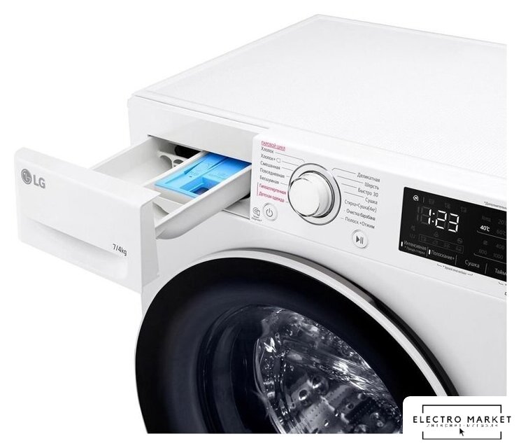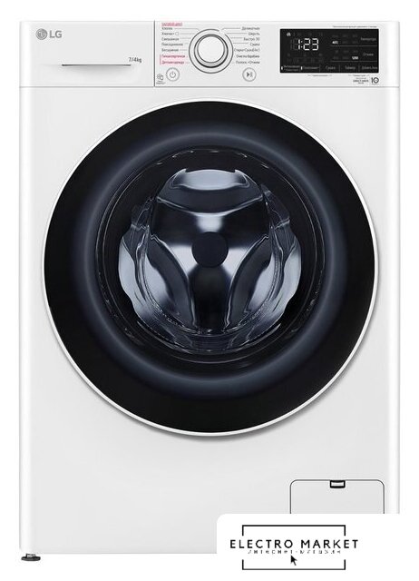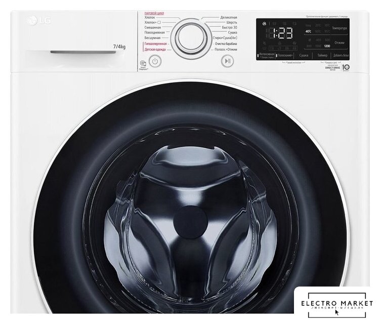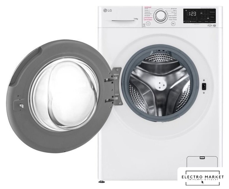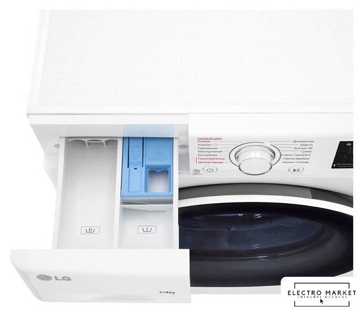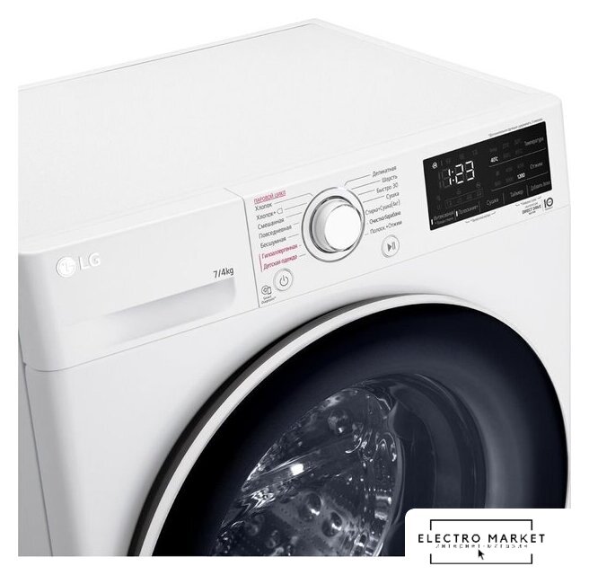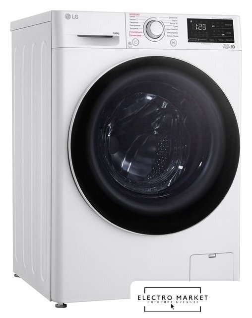 отдельностоящая, стирально-сушильная машина, сушка: естественная конденсация, с паром, загрузка до 7 кг, отжим 1200 об/мин, глубина 45.5 см (с люком 49.5 см), энергопотребление B, прямой привод, 14 программ, AI DD (LG)/6 Motion (LG)