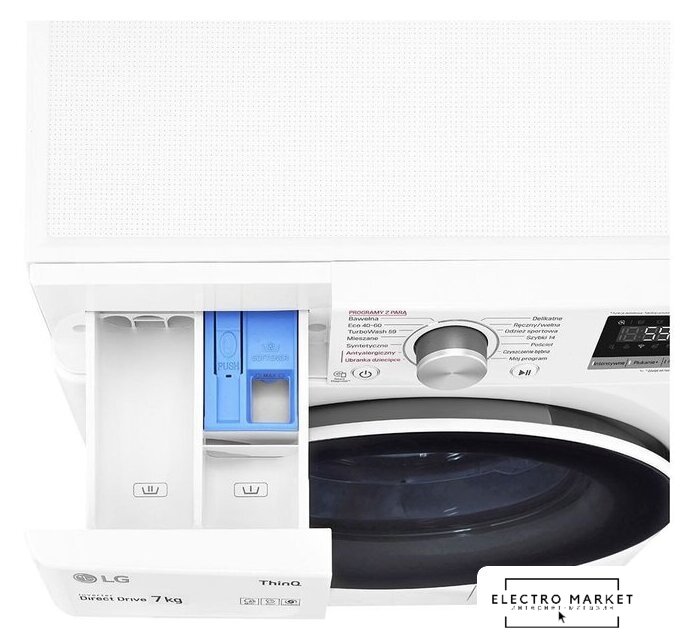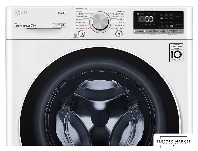 отдельностоящая, стиральная машина, с паром, загрузка до 9 кг, отжим 1400 об/мин, глубина 56.5 см (с люком 62 см), энергопотребление A, прямой привод, 12 программ, AI DD (LG)/6 Motion (LG)