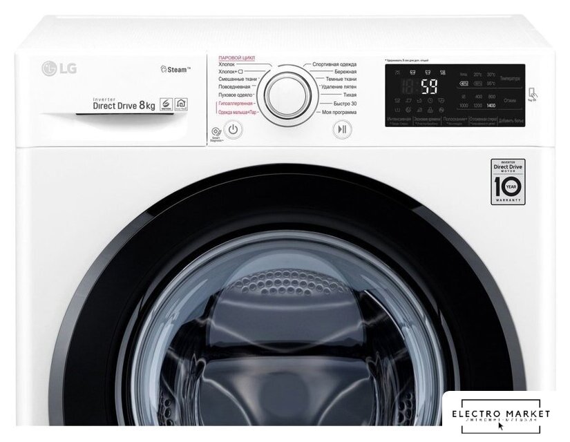 отдельностоящая, стиральная машина, с паром, загрузка до 9 кг, отжим 1400 об/мин, глубина 56.5 см (с люком 62 см), энергопотребление A+++, прямой привод, 14 программ
