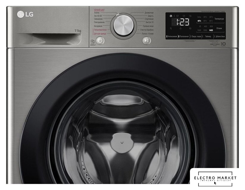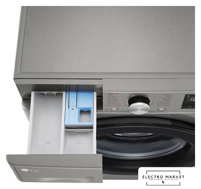 отдельностоящая, стиральная машина, с паром, загрузка до 9 кг, отжим 1400 об/мин, глубина 56.5 см (с люком 62 см), энергопотребление A, прямой привод, 12 программ, AI DD (LG)/6 Motion (LG)