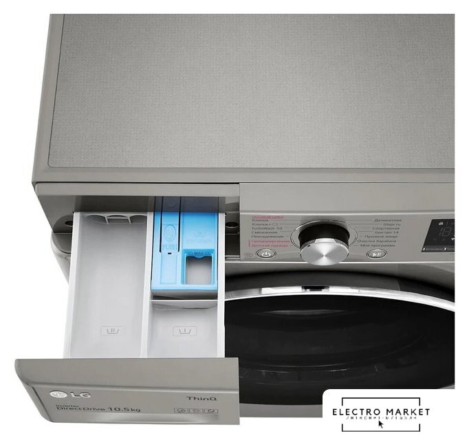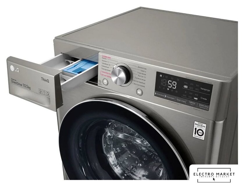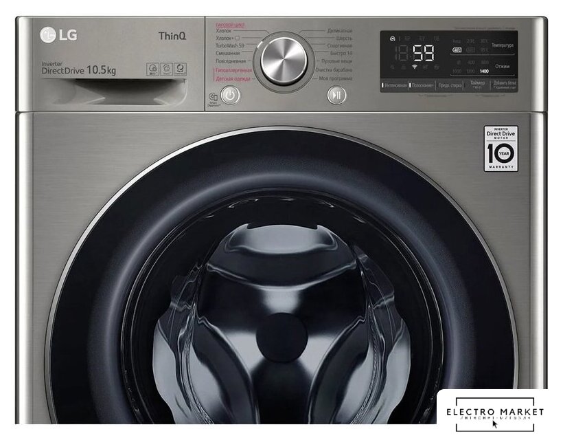 отдельностоящая, стиральная машина, с паром, загрузка до 10.5 кг, отжим 1400 об/мин, глубина 56.5 см (с люком 62 см), энергопотребление A, прямой привод, 14 программ, AI DD (LG), Загрузка двух типов белья TwinWash (LG)