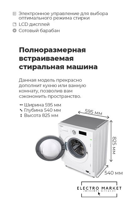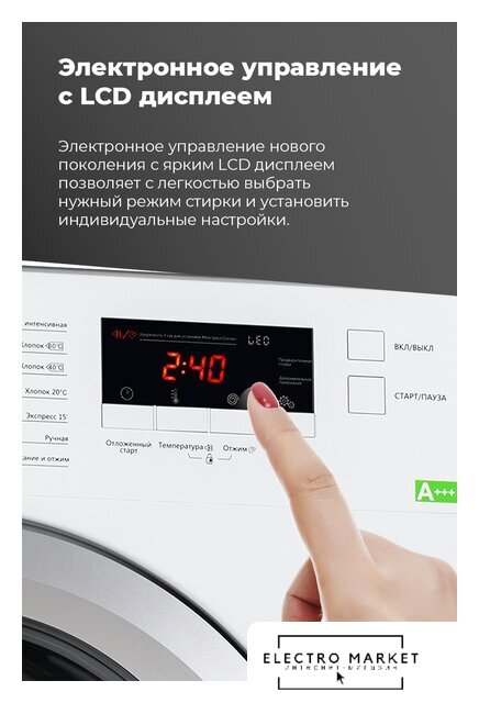 отдельностоящая, стиральная машина, загрузка до 6.5 кг, глубина 44 см (с люком 50 см), энергопотребление (new) A, прямой привод, 10 программ