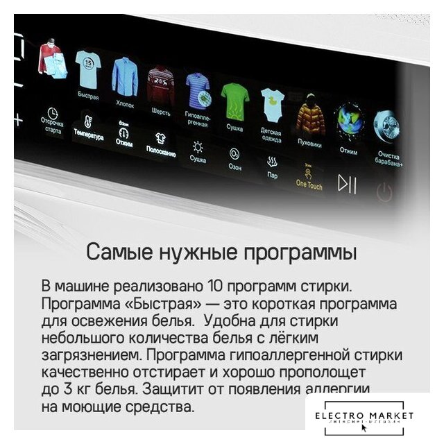 Все программы | смешанные тканибыстраяхлопокшерстьгипоаллергеннаясушкадетская одеждапуховикиотжимочистка барабанаone touch |
