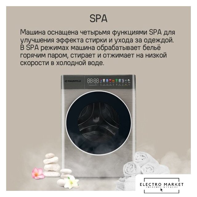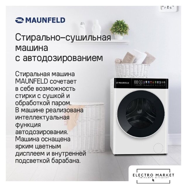 отдельностоящая, стирально-сушильная машина, с паром, загрузка до 9 кг, отжим 1400 об/мин, глубина 48 см