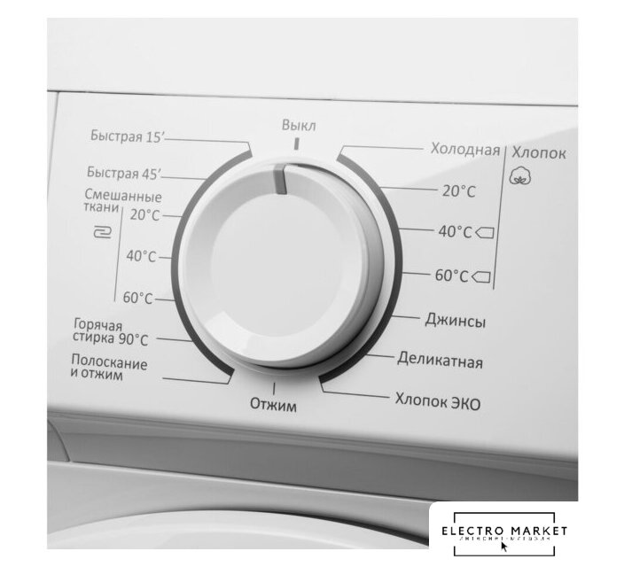 Все программы | Хлопок (холодная)Хлопок (20°С/40°С/60°С)ДжинсыДеликатнаяХлопок ЭКООтжим Полоскание и отжимГорячая стирка 90°ССмешанные ткани (60°С/40°С/30°С)Быстрая 45’Быстрая 15’ |