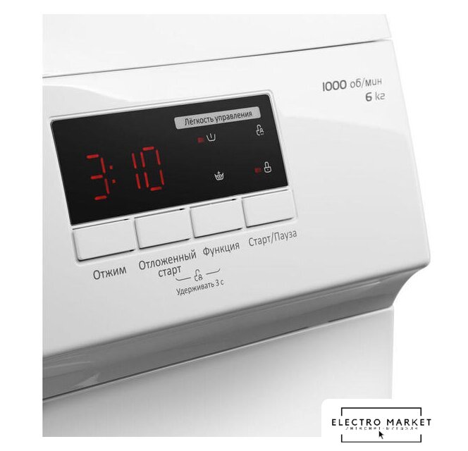 отдельностоящая, стиральная машина, загрузка до 6 кг, отжим 1000 об/мин, глубина 40 см, энергопотребление A, защита от протечек, 15 программ
