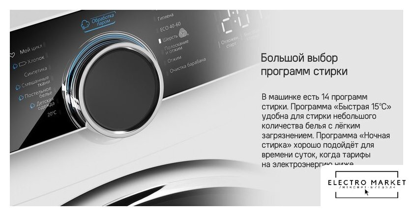 Все программы | ХлопокСинтетикаСмешанные тканиПостельное бельеДетская одежда20°CБыстрая 15°CСтерилизация ECO 40-60Шерсть Полоскание Отжим Очистка барабана |