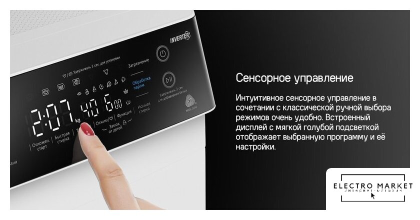 отдельностоящая, стиральная машина, с паром, загрузка до 7 кг, отжим 1200 об/мин, глубина 44 см (с люком 49 см), энергопотребление A+++, прямой привод, 13 программ