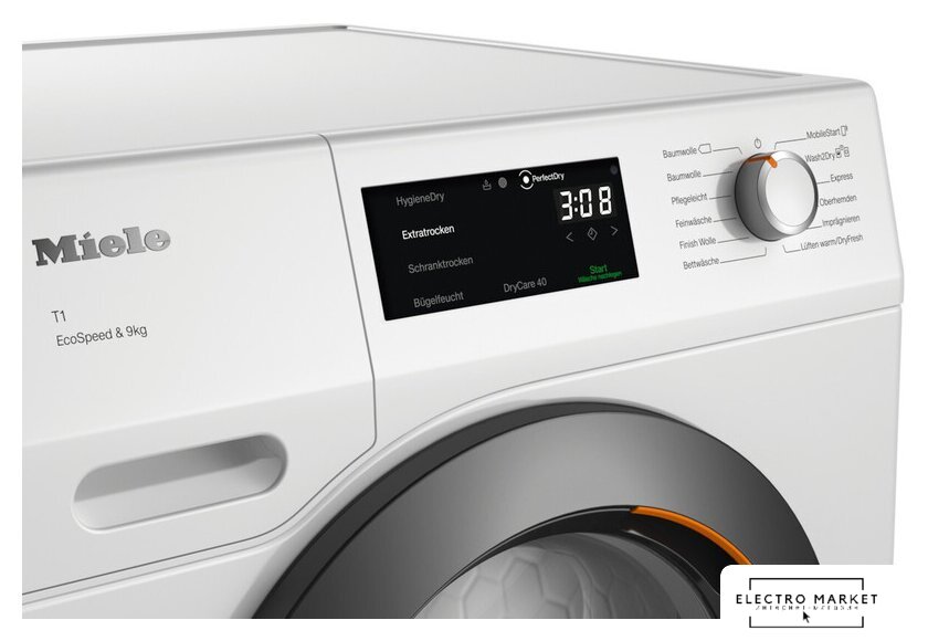 отдельностоящая, сушильная машина, сушка: конденсация с тепловым насосом, с паром, загрузка до 9 кг, глубина 63.6 см, энергопотребление A+++, 20 программ