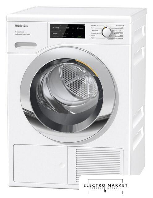 отдельностоящая, сушильная машина, сушка: конденсация с тепловым насосом, с паром, загрузка до 9 кг, глубина 64.3 см, энергопотребление A+++, 20 программ