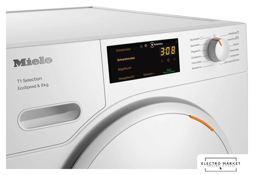 отдельностоящая, сушильная машина, сушка: конденсация с тепловым насосом, с паром, загрузка до 9 кг, глубина 64.3 см, энергопотребление A+++, 20 программ