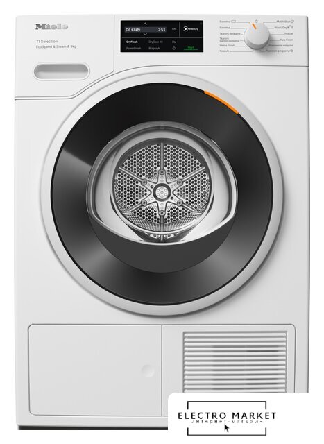 отдельностоящая, сушильная машина, сушка: конденсация с тепловым насосом, с паром, загрузка до 9 кг, глубина 63.6 см, энергопотребление A+++, 20 программ