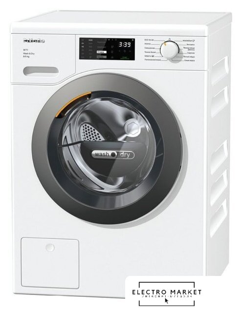 отдельностоящая, стирально-сушильная машина, сушка: естественная конденсация, с паром, загрузка до 8 кг, отжим 1600 об/мин, глубина 63.7 см, энергопотребление (new) D, 12 программ