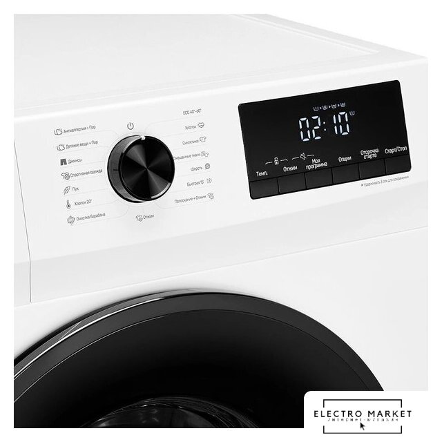 | Все программы | Хлопок 20°C, Детские вещи + пар, Антиаллергия + пар, Пуховые изделия, Джинсы, Полоскание и отжим, Отжим, Интенсивная стирка, Очистка барабана, Шерсть, Синтетика, Смешанные ткани, Хлопок, Быстрая стирка 15 мин, Eco |