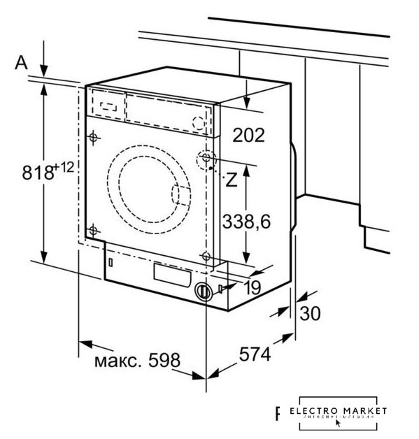 встраиваемая, стиральная машина, загрузка до 7 кг, отжим 1400 об/мин, глубина 57.4 см, энергопотребление A