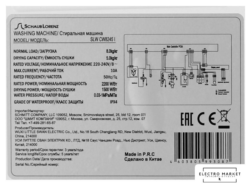 | Оригинальные функции | интеллектуальная разблокировка дверцы; функция Eco-Logic; программа "Сухая стирка"; автоматическое воспроизведение работы после отключения питания |