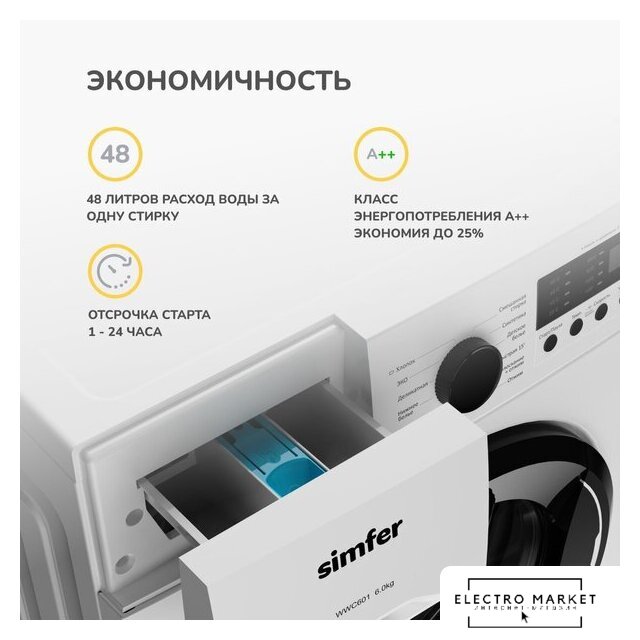 отдельностоящая, стиральная машина, загрузка до 8 кг, отжим 1200 об/мин, глубина 52.6 см (с люком 56.4 см), энергопотребление A+++, 16 программ, ABG Technology (ATLANT)