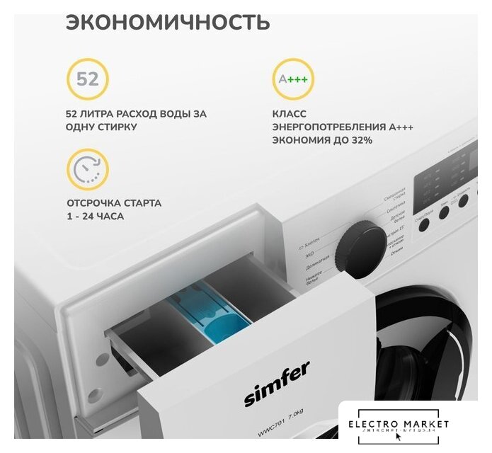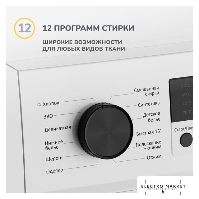 | Все программы | Хлопок; ЭКО; Деликатная; Нижнее белье; Шерсть; Одеяло; Смешанная стирка; Синтетика; Детское белье; Быстрая 15′; Полоскание + Отжим; Отжим |