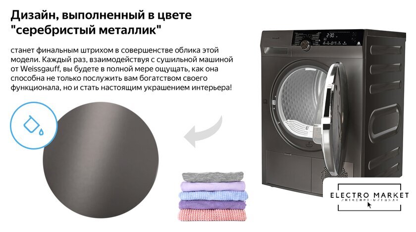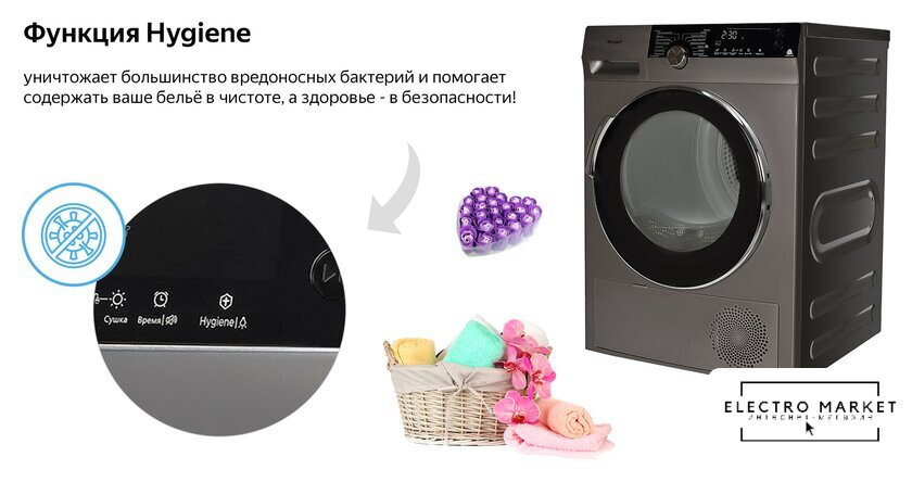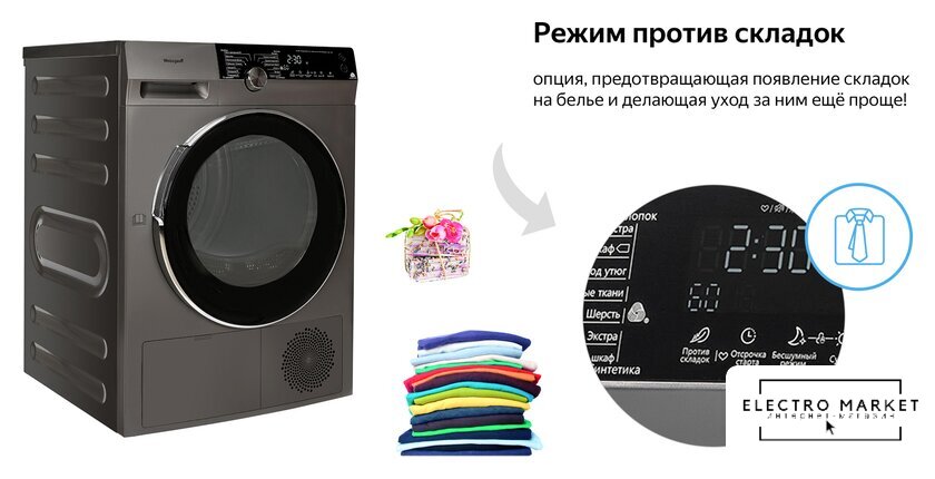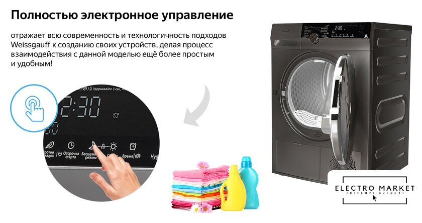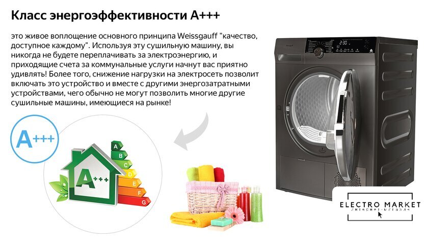 отдельностоящая, сушильная машина, загрузка до 10 кг, глубина 67.5 см, энергопотребление A+++, 14 программ