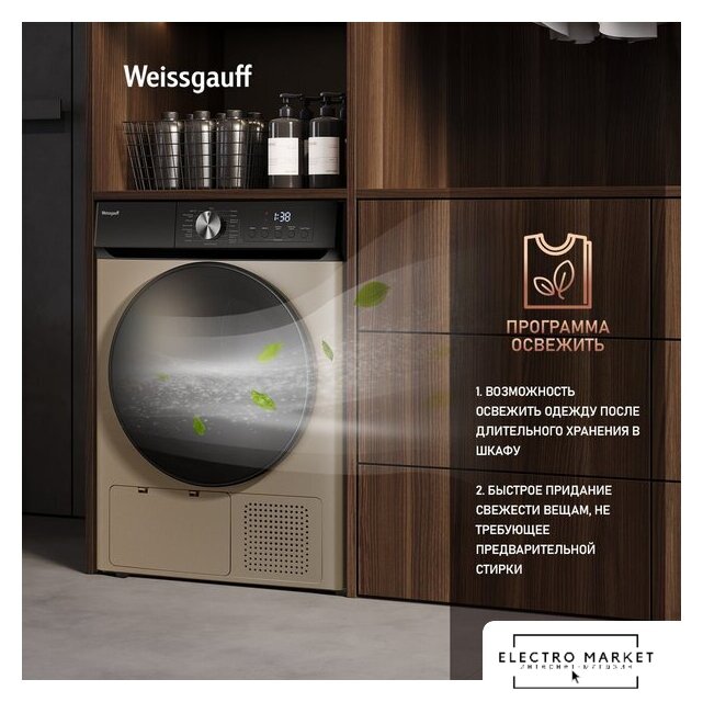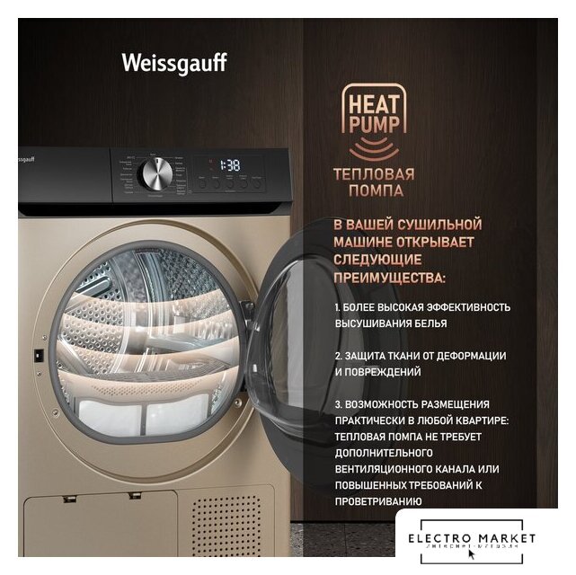 отдельностоящая, сушильная машина, сушка: конденсация с тепловым насосом, загрузка до 9 кг, глубина 66 см, энергопотребление A+++, прямой привод, 14 программ
