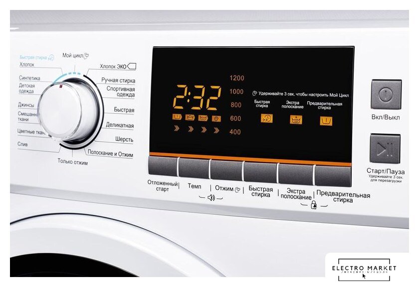 Все программы | -Хлопок-Хлопок ЭКО-Синтетика-Деликатная-Шерсть-Детская одежда-Цветные ткани-Быстрая-Только отжим-Полоскание и отжим-Слив-Смешанные ткани-Спортивная одежда-Джинсы-Ручная стирка-Мой цикл |