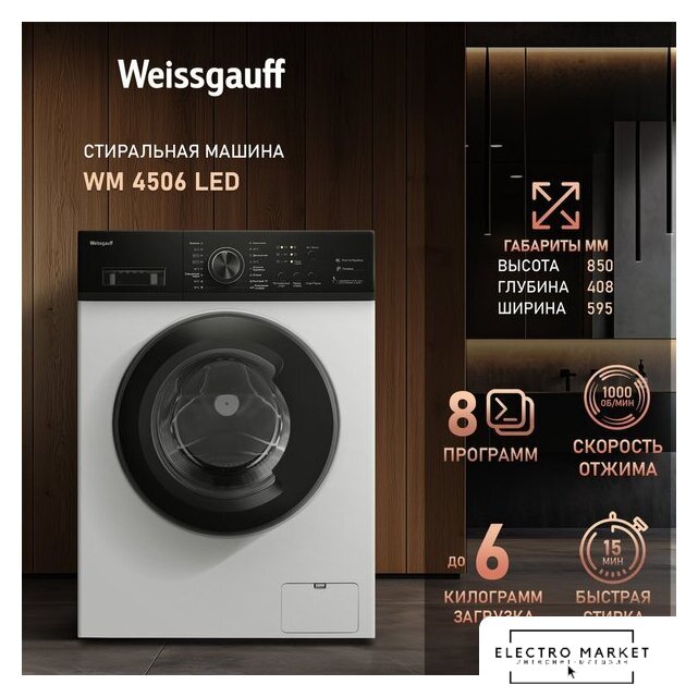 отдельностоящая, стиральная машина, загрузка до 6 кг, отжим 1000 об/мин, глубина 40 см, энергопотребление A+, 15 программ