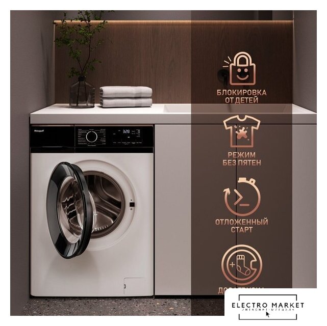 отдельностоящая, стиральная машина, загрузка до 6 кг, отжим 1000 об/мин, глубина 43 см, энергопотребление A+, защита от протечек, 16 программ