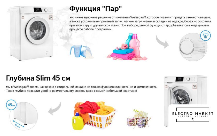 отдельностоящая, стиральная машина, с паром, загрузка до 6 кг, отжим 1000 об/мин, глубина 43.5 см, энергопотребление A, 15 программ