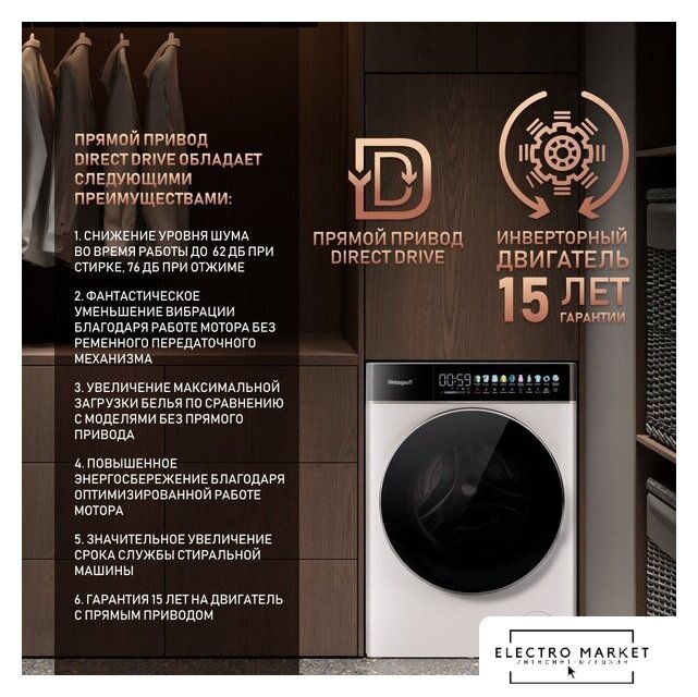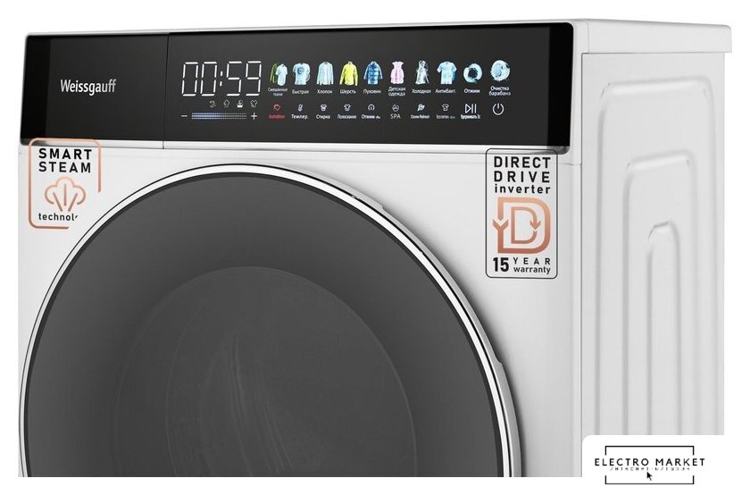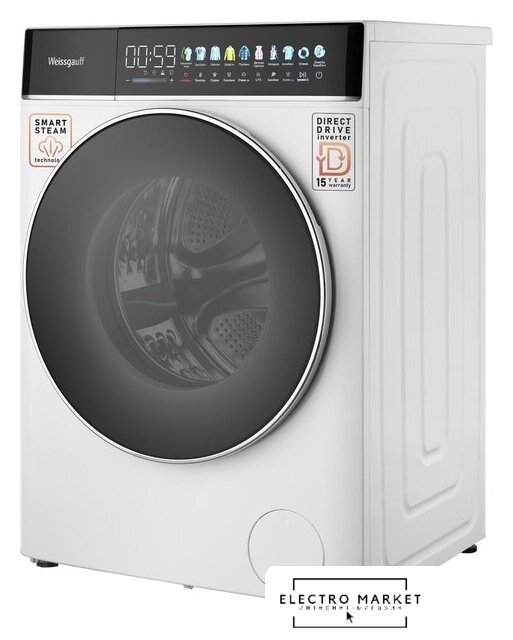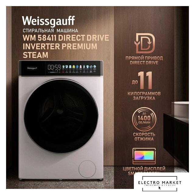 отдельностоящая, стиральная машина, с паром, загрузка до 9 кг, отжим 1400 об/мин, глубина 56 см (с люком 61.5 см), энергопотребление A+++, прямой привод, 14 программ
